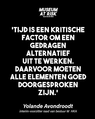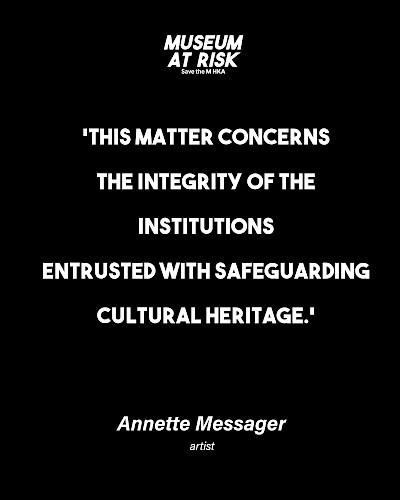 The Museum of Contemporary Art Antwerp (M HKA) is fighting for its survival. Following the sudden announcement by Flemish Minister of Culture Caroline Gennez (Vooruit) to dismantle the M HKA as a museum and transfer its collection to S.M.A.K. in Ghent, the museum—backed by renowned artists, legal experts, and international museum directors—has, together with Museum at Risk, obtained legal advice branding the plans as "flagrantly unlawful". According to the analysis by honorary counsel Leo Neels (Allen & Overy), Gennez’s concept note violates fundamental principles of good governance, including the principle of legitimate expectations, artists’ moral rights, and the obligation to consult.