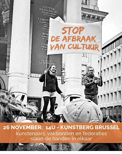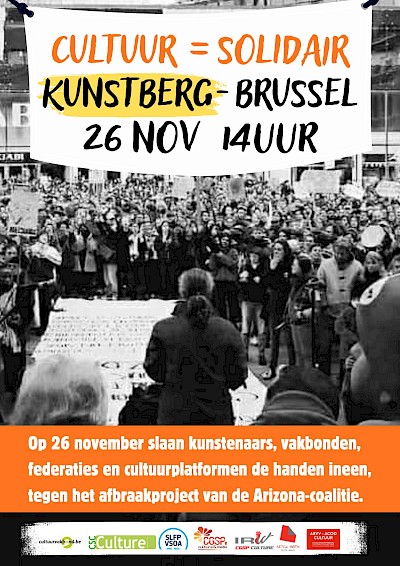 On November 26, artists, unions, federations, and cultural platforms will join forces against the dismantling project of the Arizona coalition.